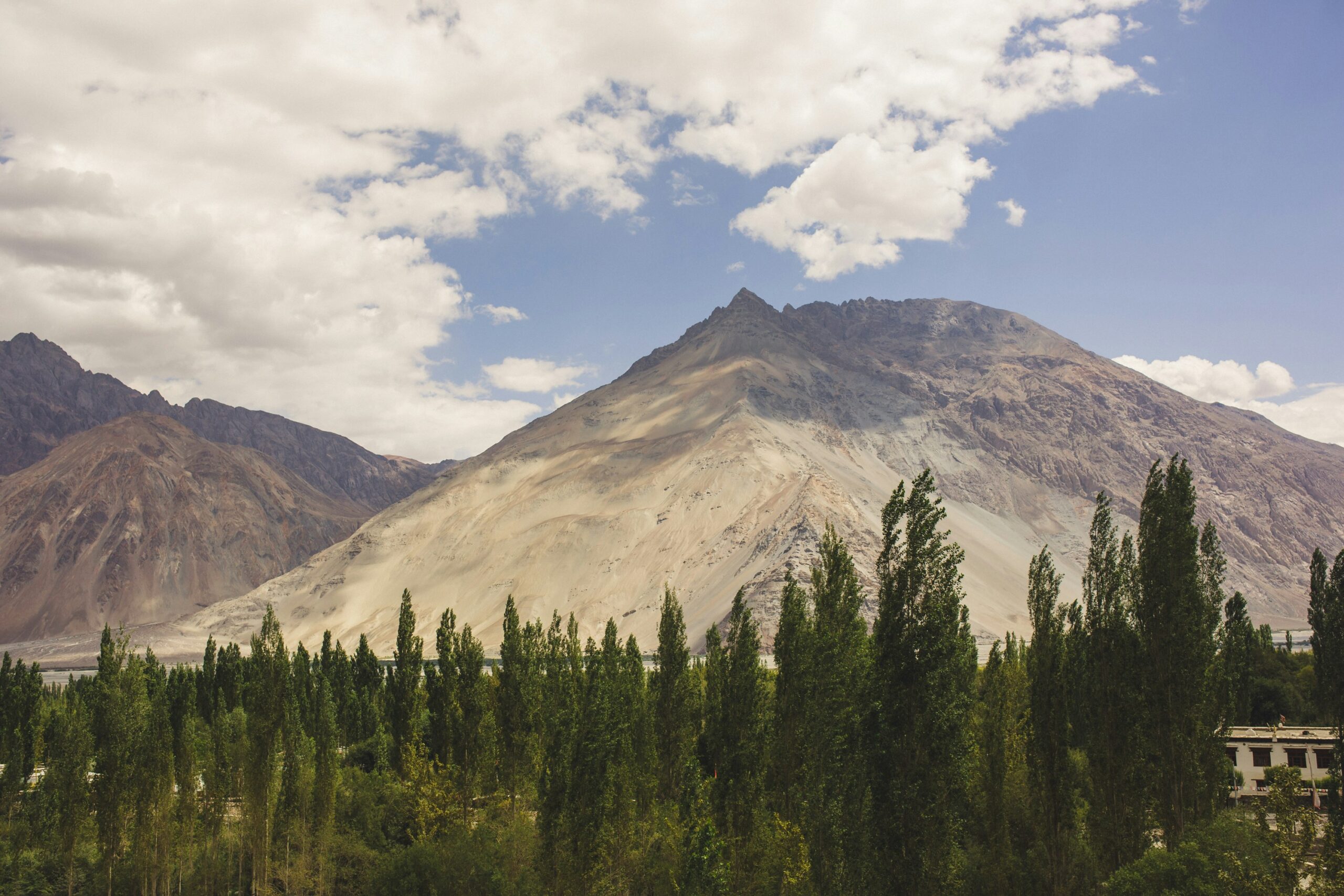 Descending into Nubra Valley, the landscape shifts dramatically from rocky high-altitude desert to fertile river basin. Nubra lies at the confluence of the Shyok and Nubra rivers. In Hunder, you’ll witness sand dunes and the rare double-humped Bactrian camels, remnants of the ancient Silk Route trade.